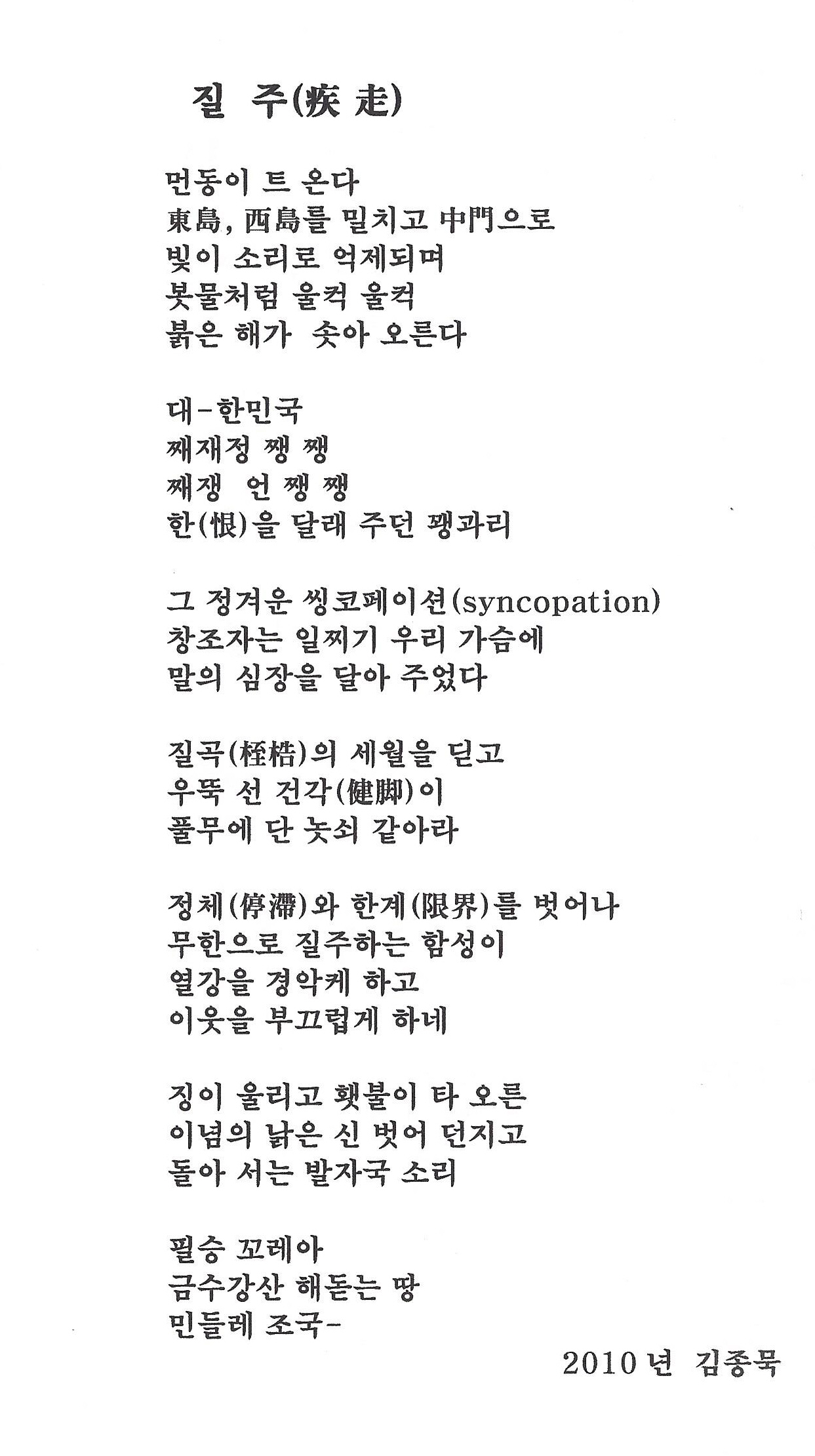 끝으로 필승 꼬레아 금수강산 해돋는 땅 민들레 조국, 이민광야길에 서 있으며