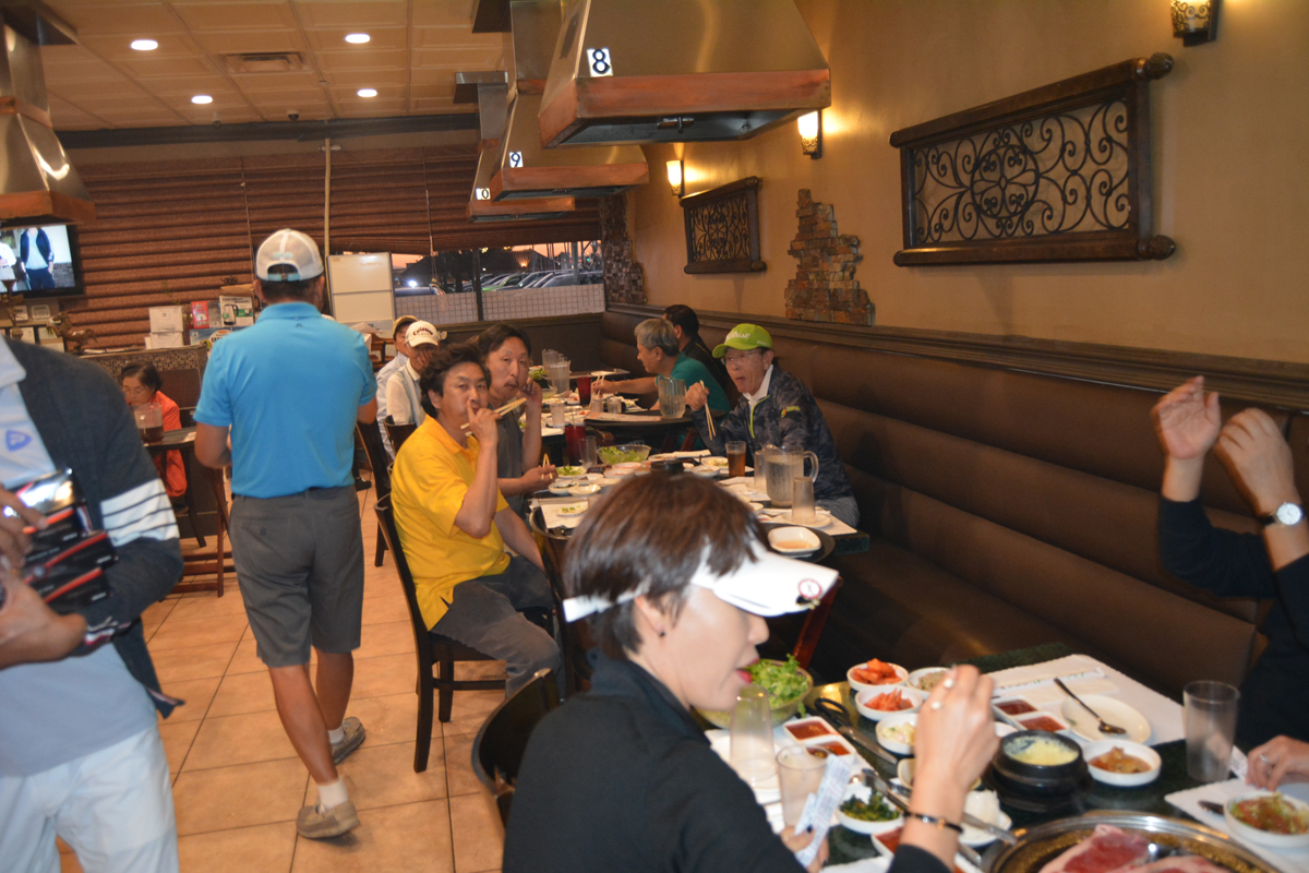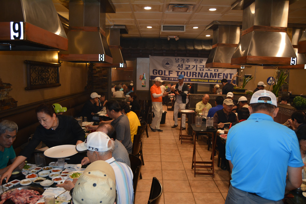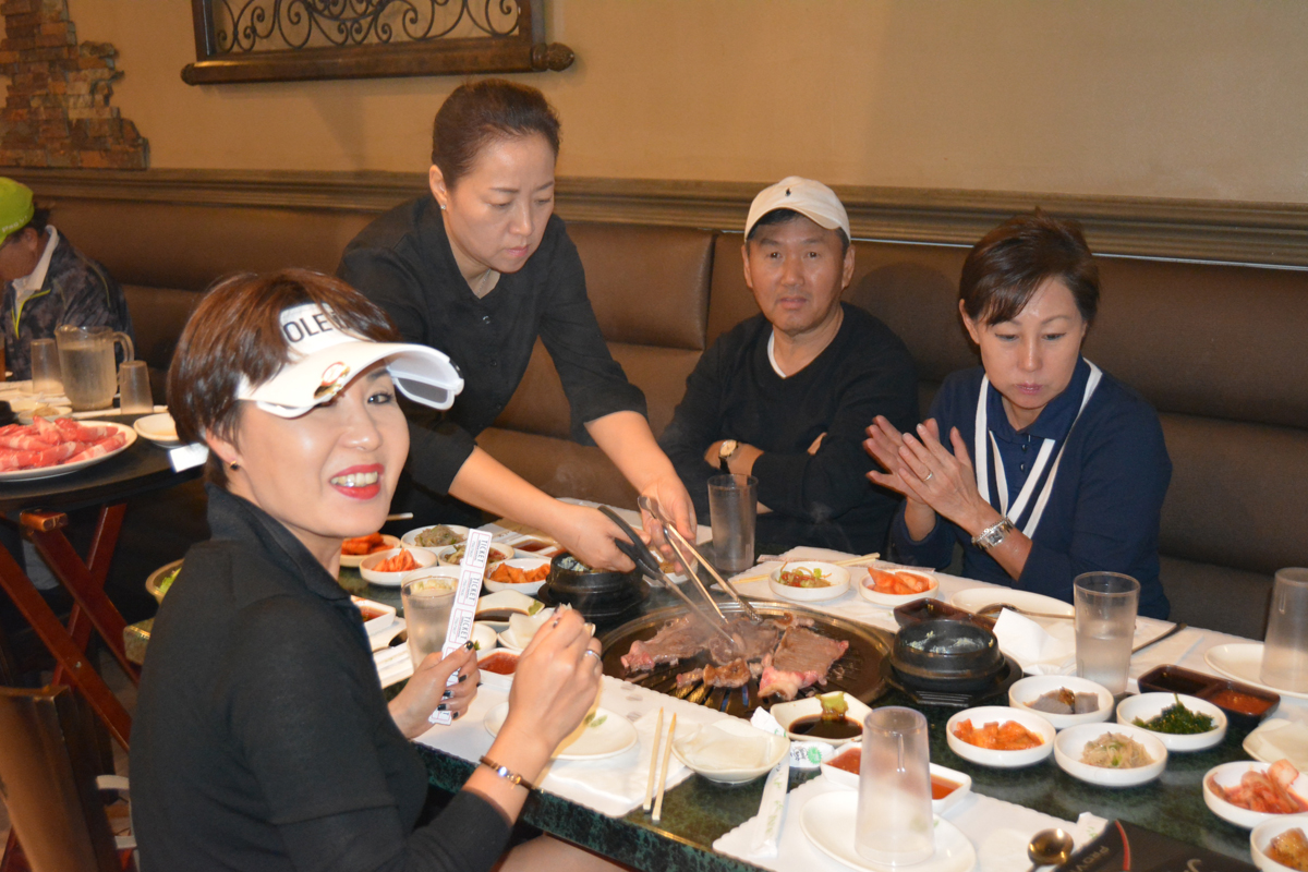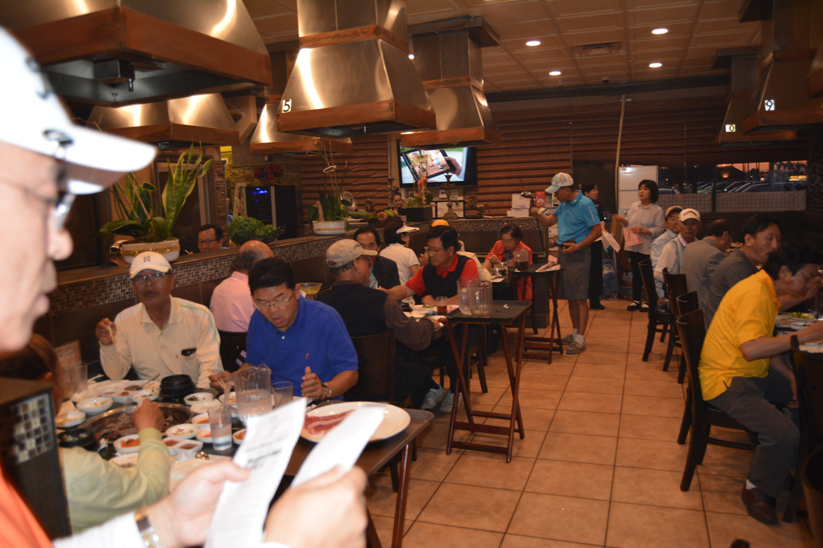 골프대회후 저녁식사를 아리아식당에서 80명이흥미롭게 마쳤습니다. 참석한 젊은 골퍼들이 가을에 한번 더하자구 난리를 치는데 행사위원장이 김밥 사건때문에.........