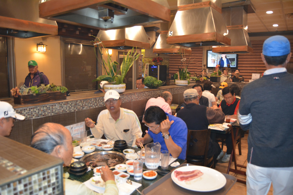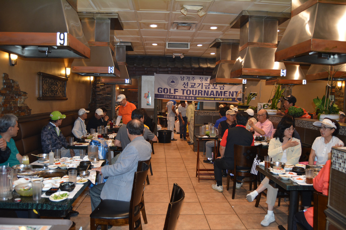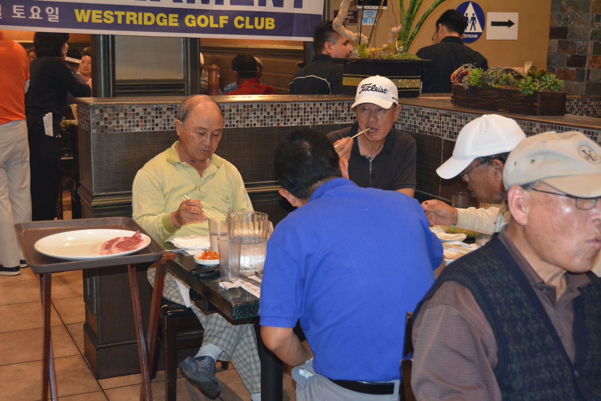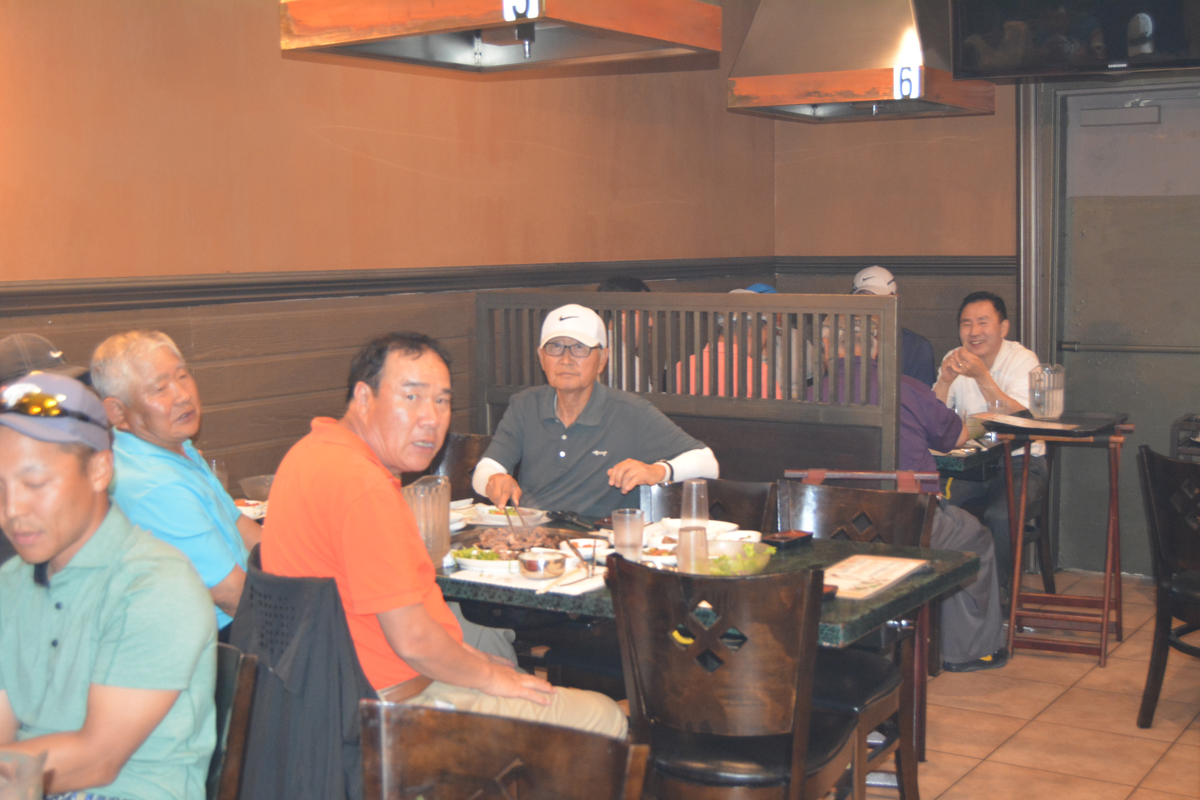 골프대회후 저녁식사를 아리아식당에서 80명이흥미롭게 마쳤습니다. 참석한 젊은 골퍼들이 가을에 한번 더하자구 난리를 치는데 행사위원장이 김밥 사건때문에.........