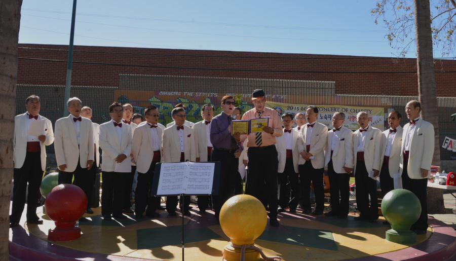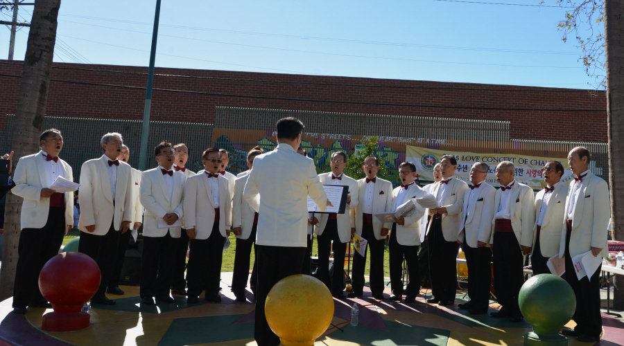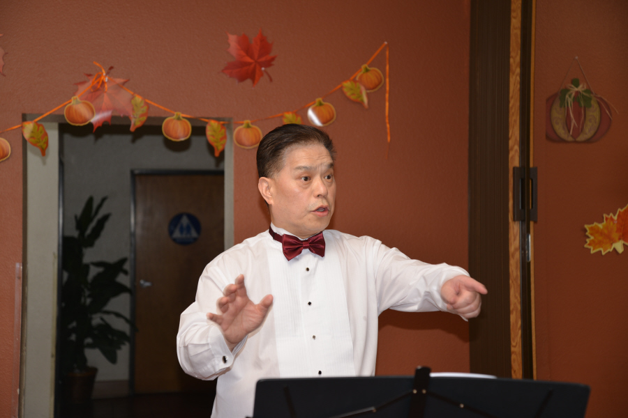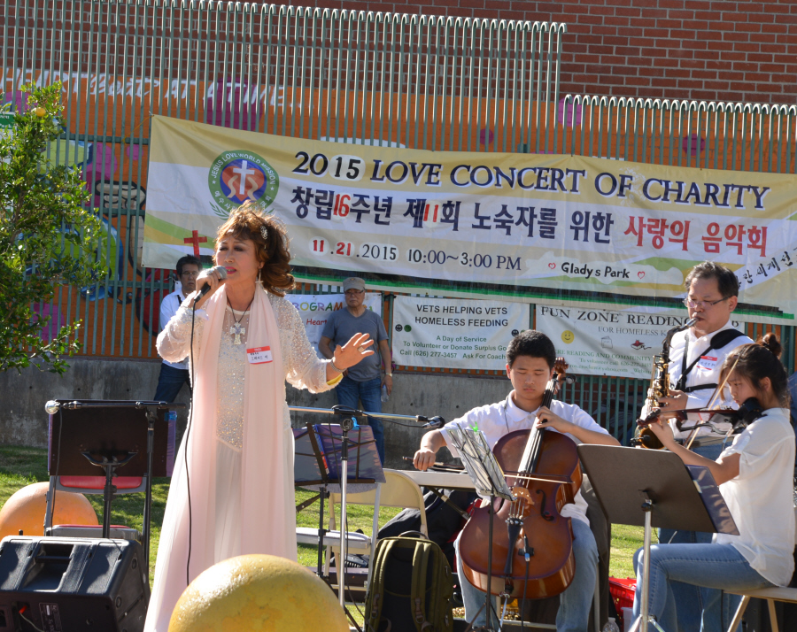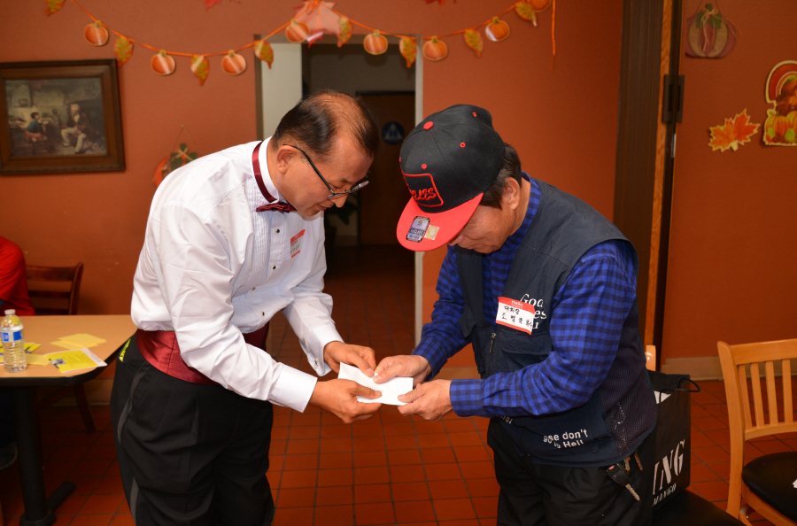 남가주장로성가단 이홍주 단장이 예수사랑 세계선교회 조병국 목사님에게