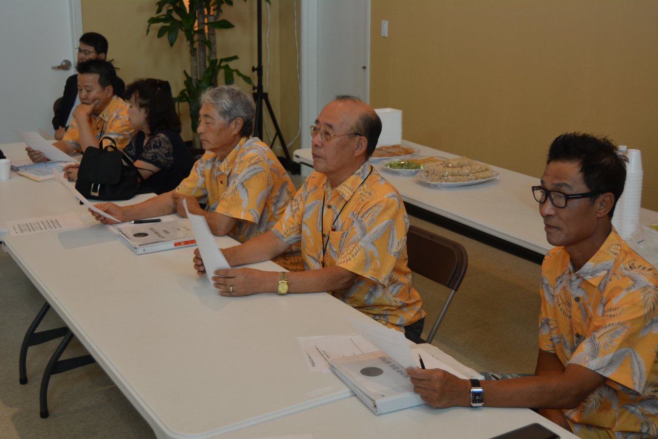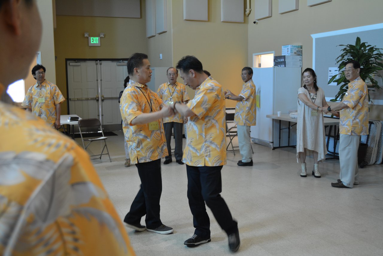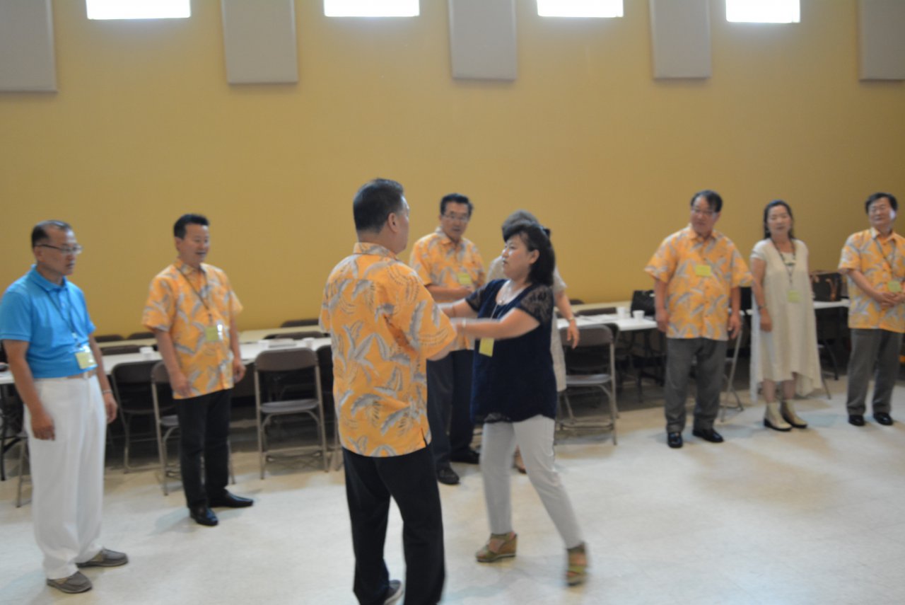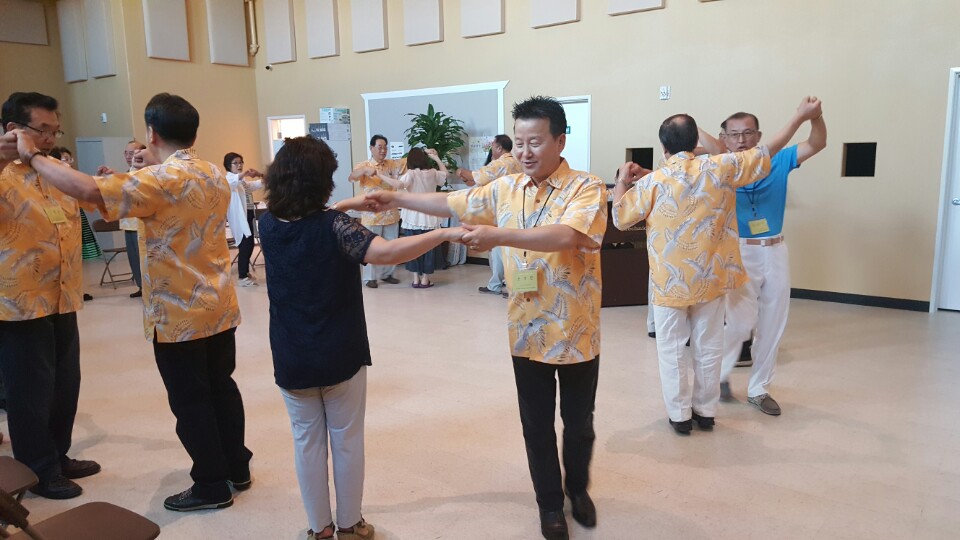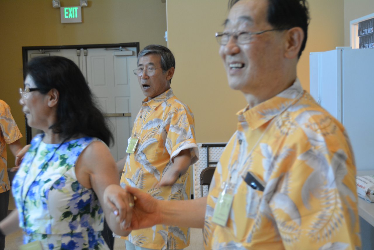 전날 밤 헤어질 때 나눠드린 하와이언 셔츠로 갈아입고, 시간 맞춰 조별로 도착하시는 장로님들의 얼굴에 상기된 표정이 역력..